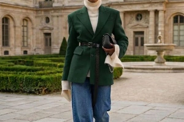 This combination works for errands, casual meetings, or city strolls. The accessories ensure the blazer remains the focal point without overwhelming the outfit.